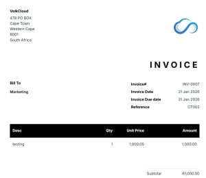 Invoices are generated in a clean, professional format that reflects your brand and ensures clarity for customers. Whether billing a single client or issuing multiple invoices, VolkCloud makes the process efficient and accurate.